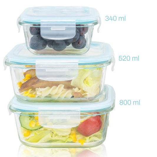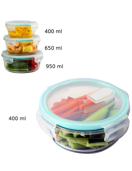 Set de 3 recipientes redondos de vidrio con tapa hermética de plástico y válvula