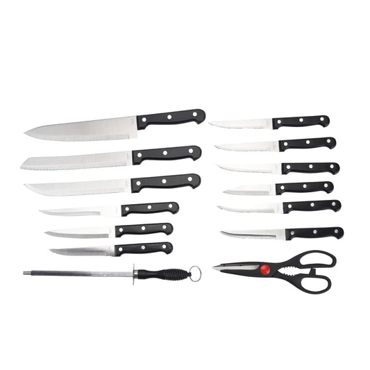 Set de cuchillos, tijeras y afilador 14 pzs y base de bambú