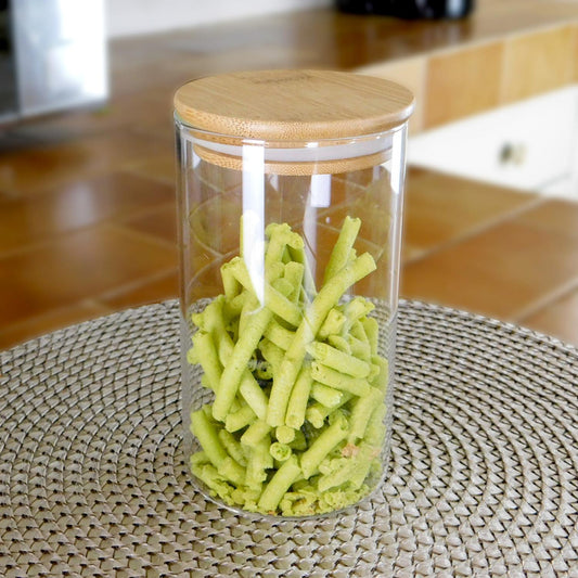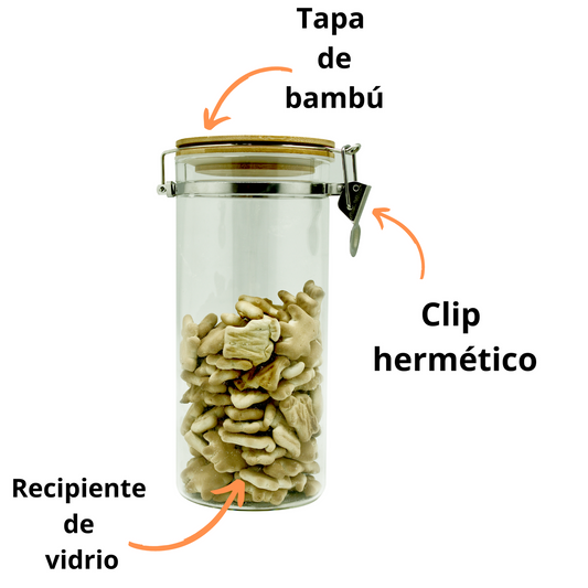 Recipiente de vidrio con tapa hermética de bambú 1.4 L
