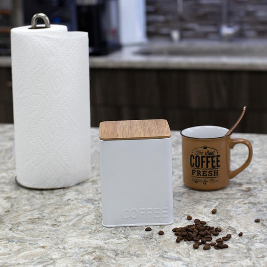 Recipiente de lata con tapa hermética de bambú rectangular "COFFEE"