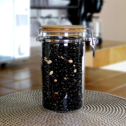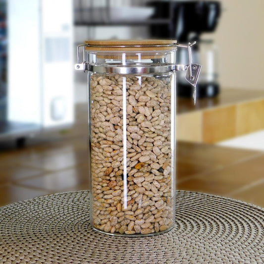 Recipiente de cristal con tapa de clip hermética de bambú 1.2 L
